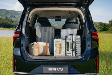 星海V9越享系列以超大车内空间及精妙设计解决了传统MPV第三排与后备箱难以兼顾的核心问题。新车长宽高分别为5230mm*1920mm*1820mm,轴距3018mm,得房率高达85.2%,每一排都有宽裕腿部空间。第三排采用同级唯一的4/6下沉放平设计,可与地板齐平,秒变亲子游乐场或1.7米大床房。7人模式下,仍有593L超大后备箱,轻松装下1个24英寸行李箱、7个20英寸行李箱和7个背包,让大家庭出游告别“断舍离”。2人模式下,可实现2616L超大装载空间。