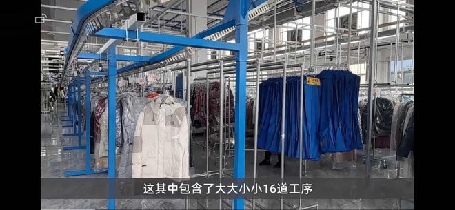 在厂里,洗衣服被拆分成16道工序:先分拣,区分出需要特殊护理的面料和材质;机洗;洗完晾晒,这一步也要根据材质放入不同烘干机;检查效果;熨烫消毒;最后是出厂质检与品控,装箱打包。